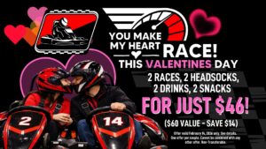Roses are Red Engines go Vroom Skip the boring date night And forget the typical dining room... IndyKart Raceway has the best Valentine's Deal when the budget is tight! Bring your Valentine to IndyKart Raceway this Valentine’s Day! Our special includes: 2 - Races...